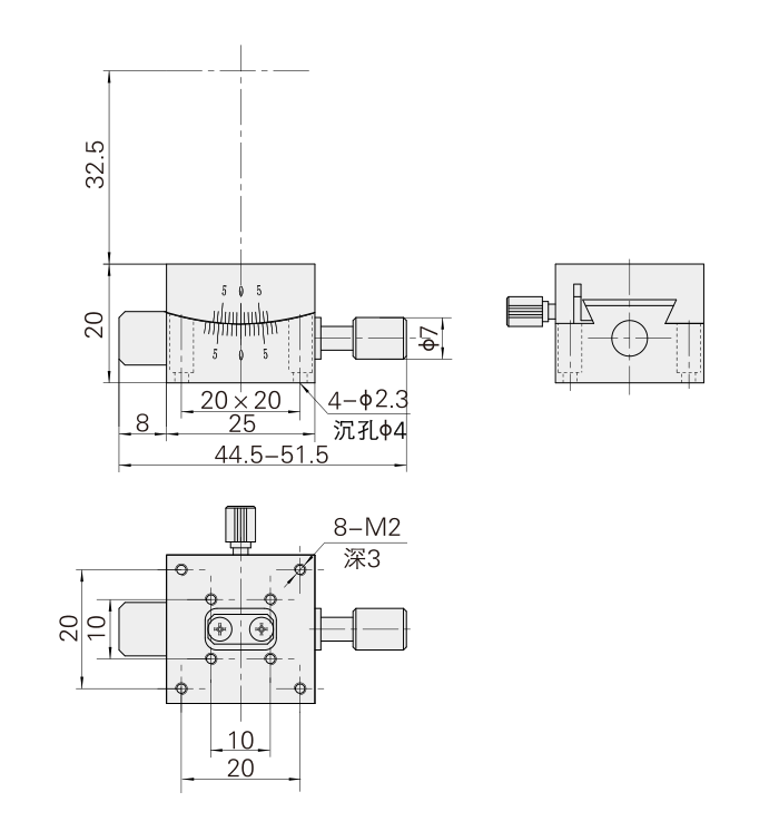 燕尾導軌,螺紋付驅動,彈簧復位,可與TG103共軛組合
