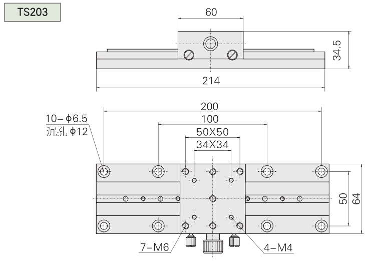 燕尾副導軌,斜齒輪齒條驅動 側面鎖緊 臺面和底座分布標準孔距的安裝孔