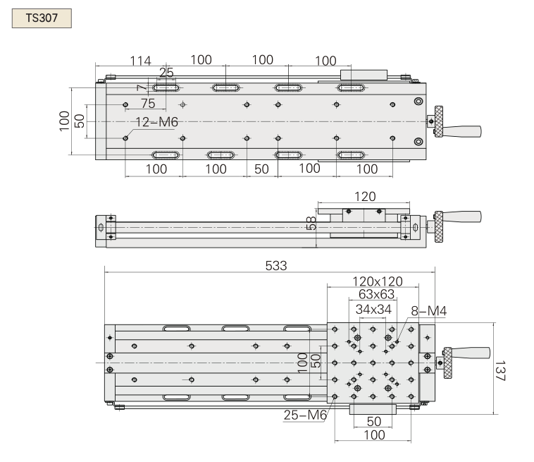 精研絲桿,線性軸承導軌 數顯游標尺,動態顯示位移 臺面和底座分布標準孔距的安裝孔