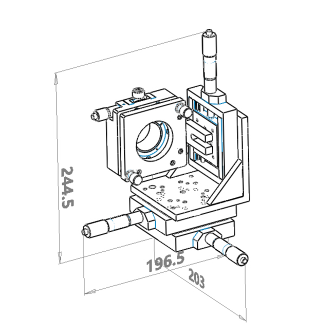 調整維數:六維 調整行程:Tx,Ty,Tz:25mm θx,θy:±5° θz:360°