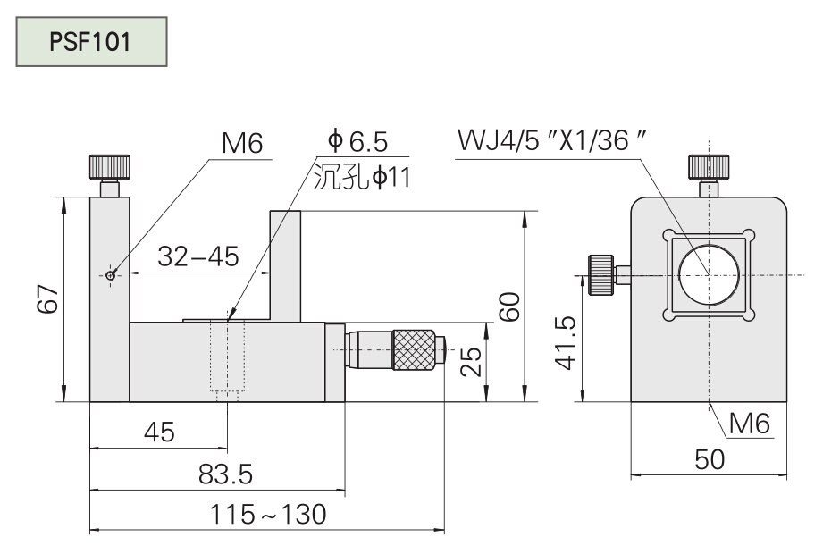 微分頭驅動顯微物鏡座 可連續定量調整物鏡與針孔之間的距離 精密線性滾珠導軌,運動穩定,精度高 M6×0.25 細牙螺桿兩維精確調整