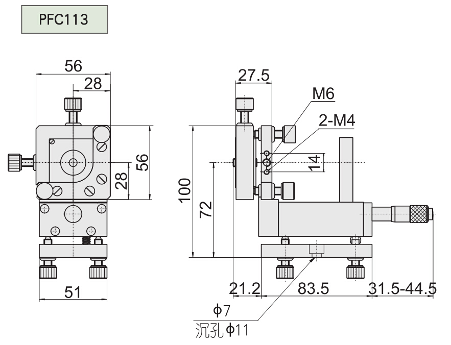 - PFC111型精密光纖耦合器與顯微物鏡座一體化,便于光束與光纖耦合
