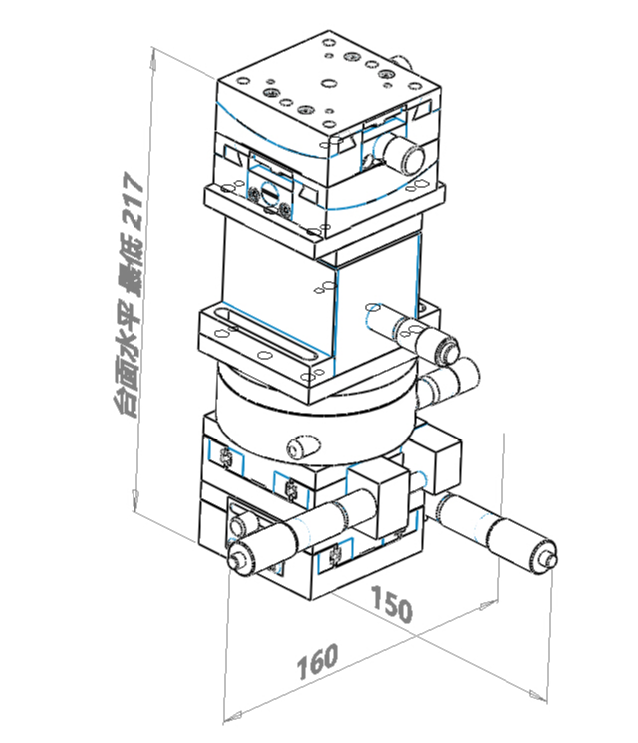 調整維數:六維 調整行程:Tx,Ty:25mm Tz :5mm θx, θy:±10° θz : 360°