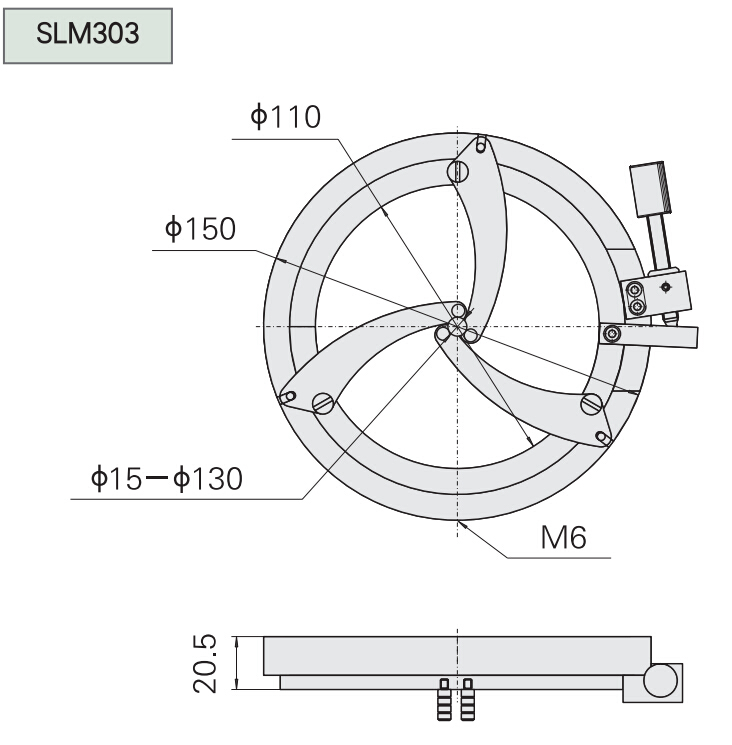 手動三點夾持,同時開啟 鏡片不受夾持力,無光學畸變 更換不同直徑透鏡,透鏡中心不變