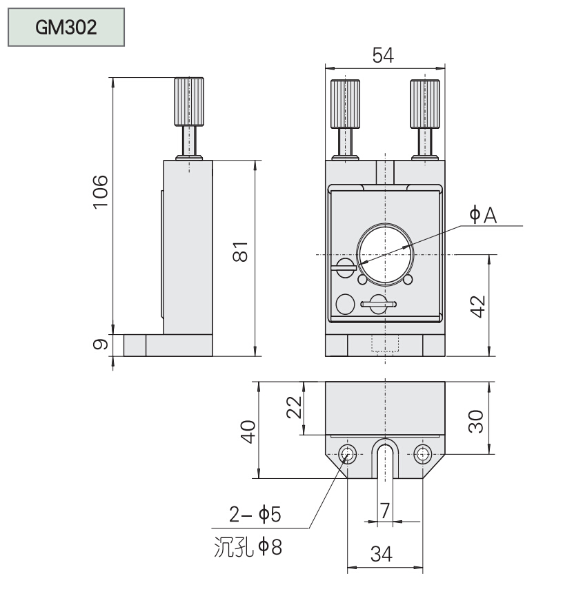型號 GM302 A夾持直徑(mm) Φ25/Φ25.4 傾斜調整范圍 θy ±3° θz ±3° 自重(kg) 0.3 夾持厚度 2-6