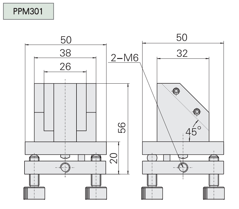 夾持的棱鏡與水平面成45°角,鏡座可以360°旋轉(zhuǎn) 兩維傾斜調(diào)整,碟簧復(fù)位 M6×0.25 細(xì)牙螺紋調(diào)節(jié)