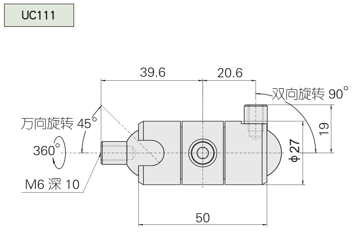 兩端均可繞自身軸線和主軸旋轉(zhuǎn)360° 可側(cè)擺90° 單螺釘即可鎖定所有自由度